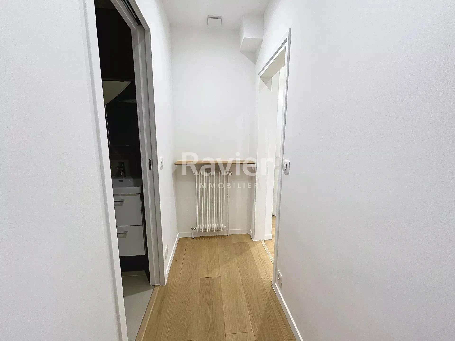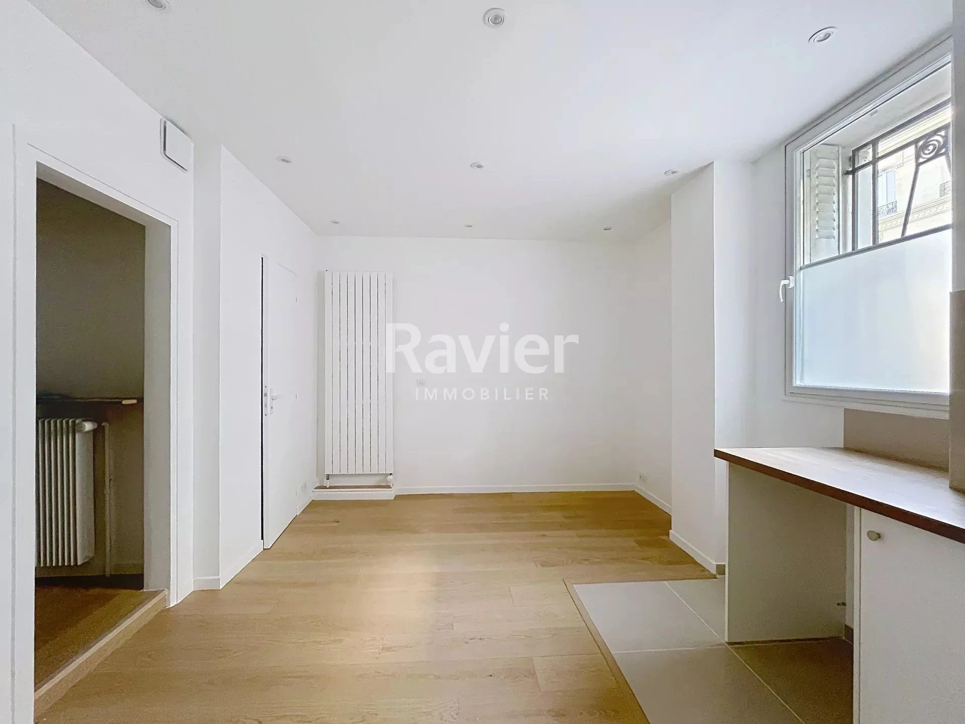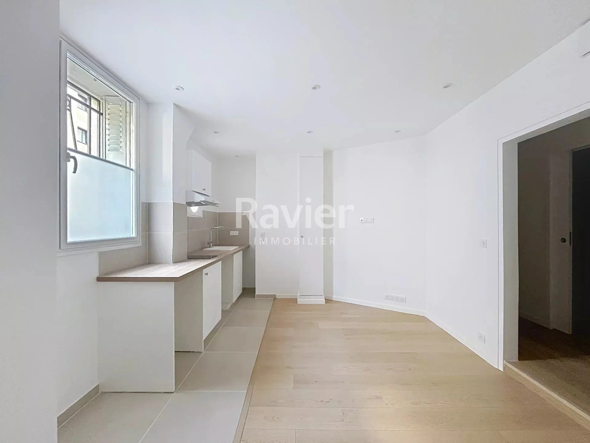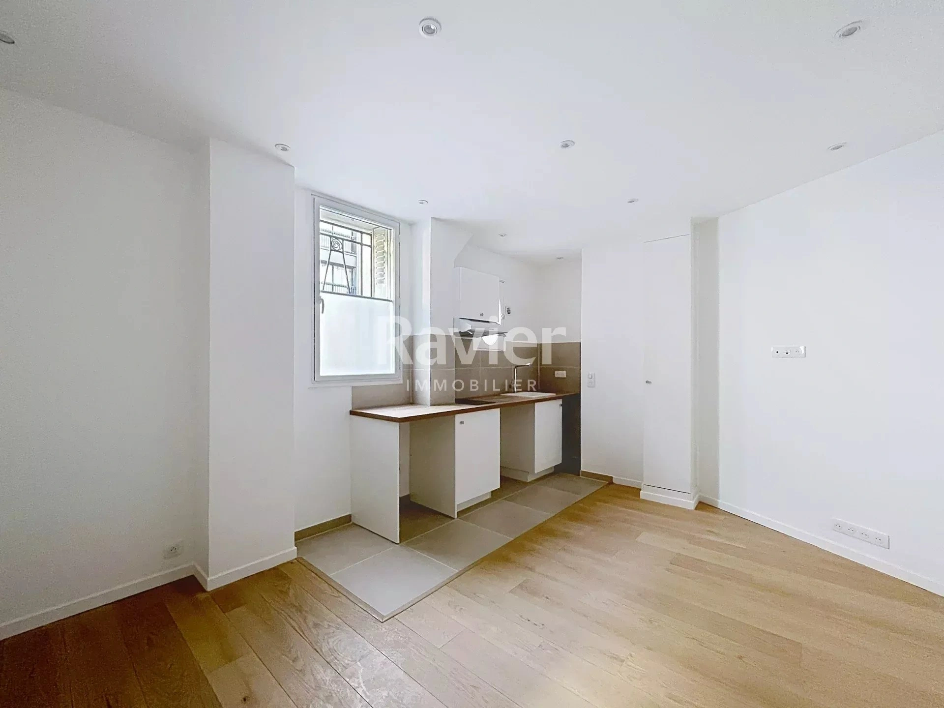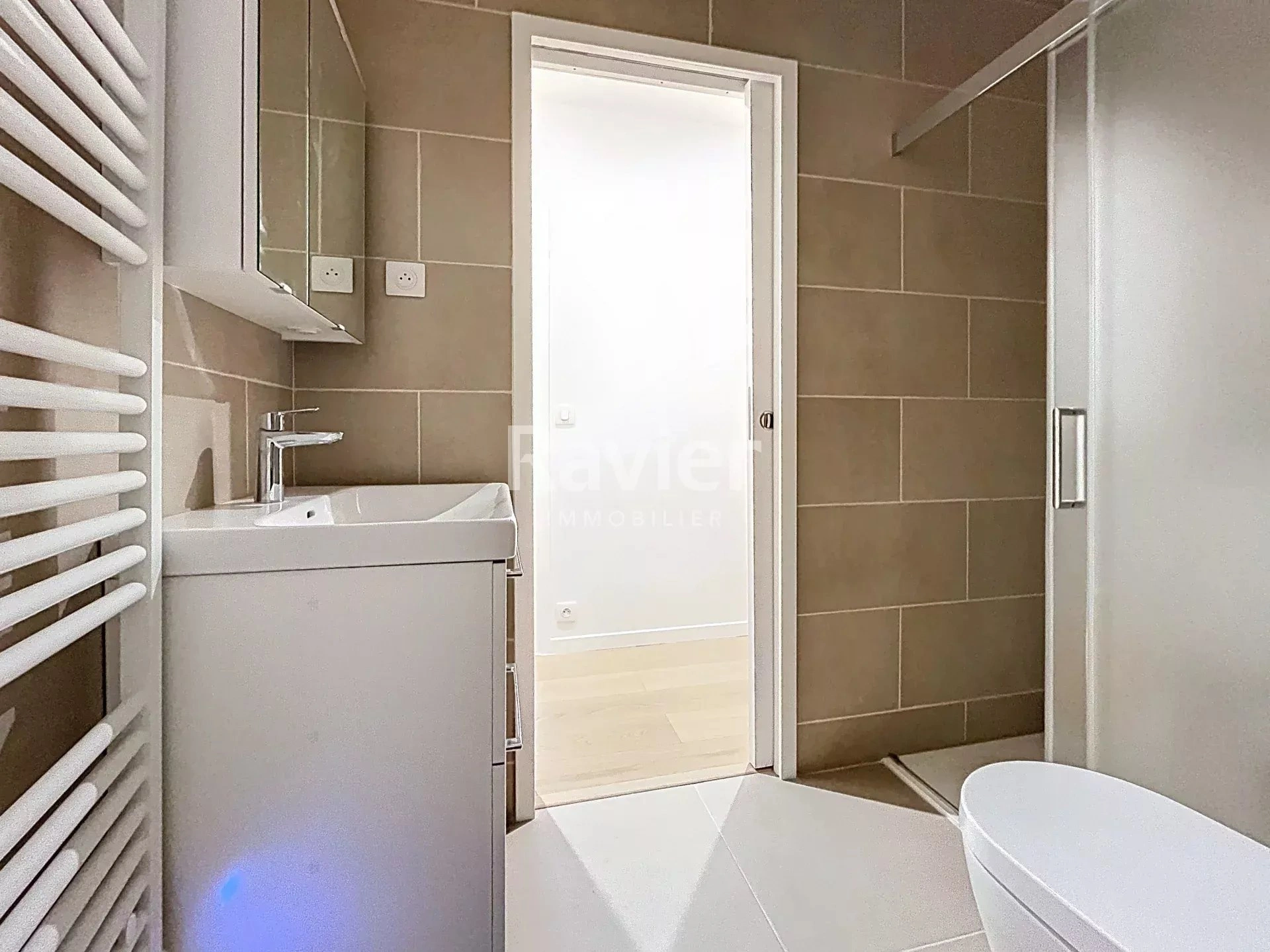 Au rez-de-chaussée d'un immeuble pierre de taille, un très beau studio entièrement refait à neuf de 22.5m², comprenant : une entrée, une pièce de vie agréable avec cuisine aménagée et petit dressing, une salle de douche avec WC.