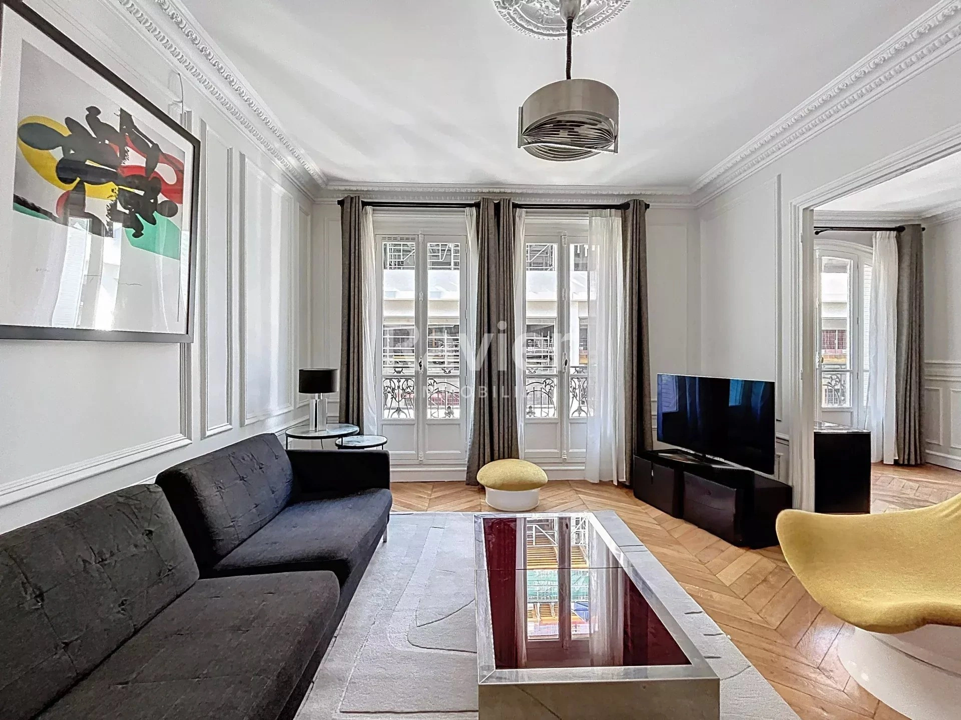 Au 4ème étage avec ascenseur d'un immeuble ancien, un appartement loué meublé comprenant une entrée, salon, salle à manger, trois chambres, cuisine aménagée et équipée, salle de bains, salle d'eau, wc séparé, dégagement, placards.