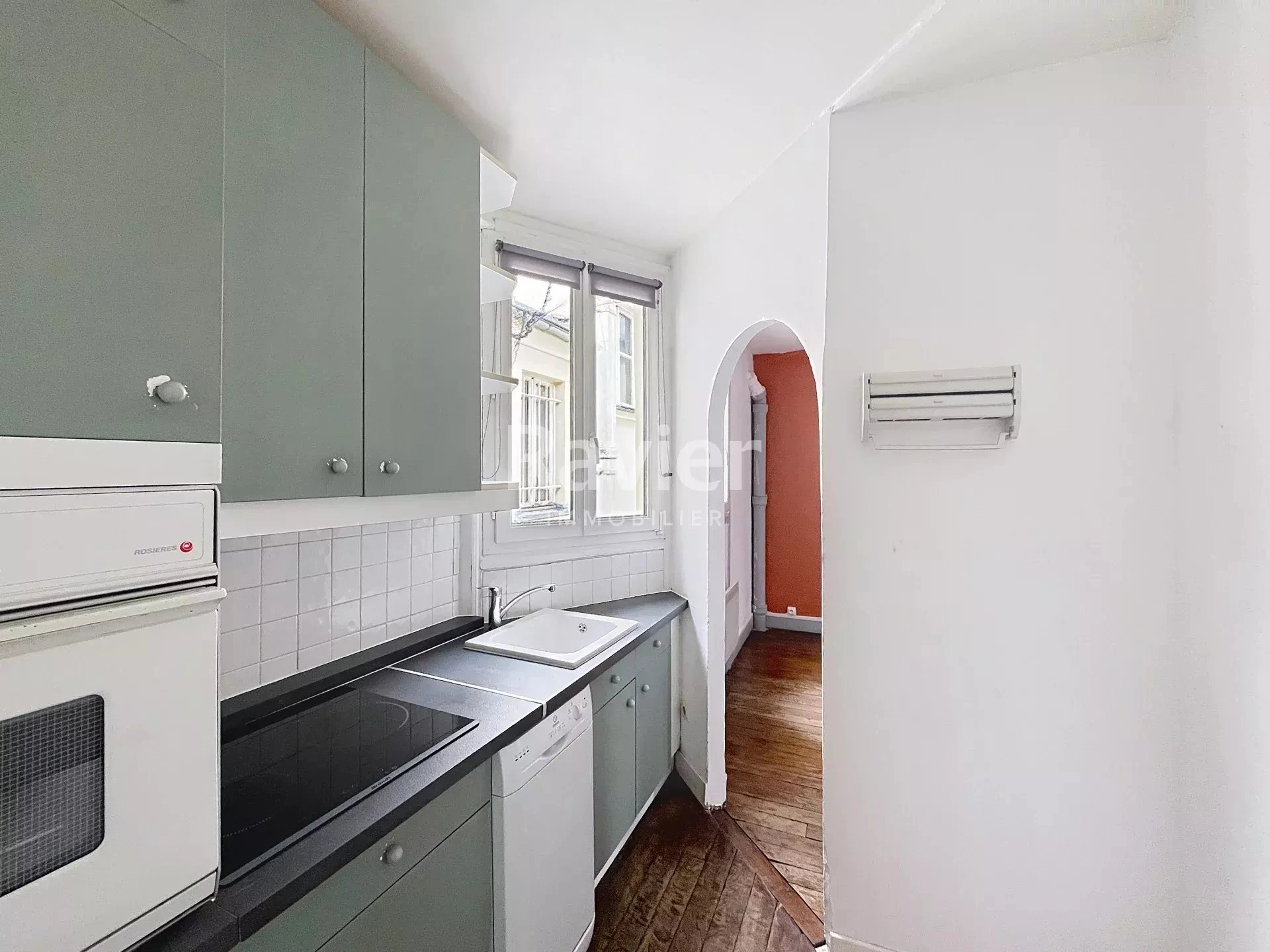 Il est composé d'une entrée, d'une pièce de vie avec une vue Tour Eiffel, une chambre sur cour, une cuisine aménagée et équipée et d'une salle d'eau avec toilettes.