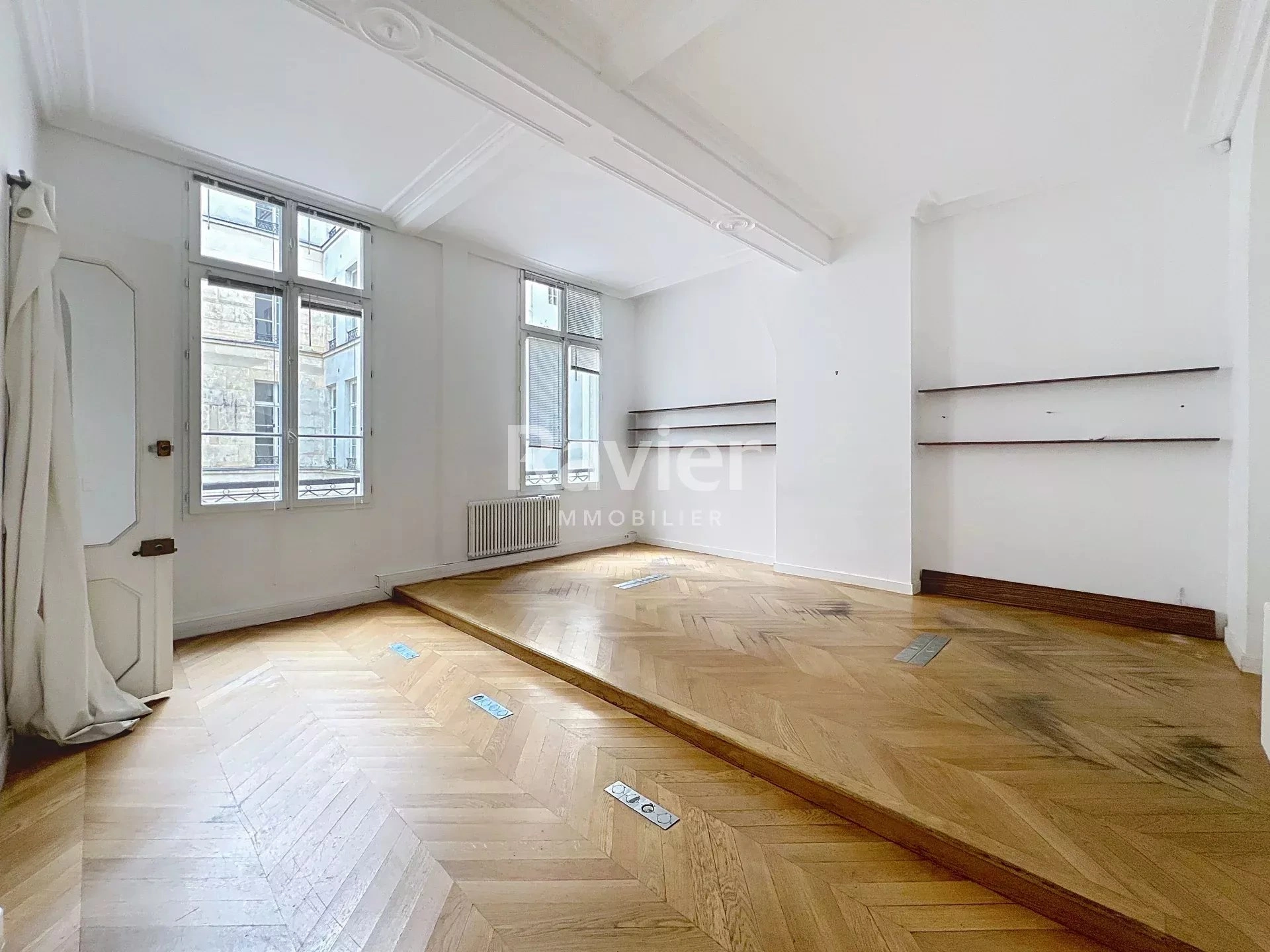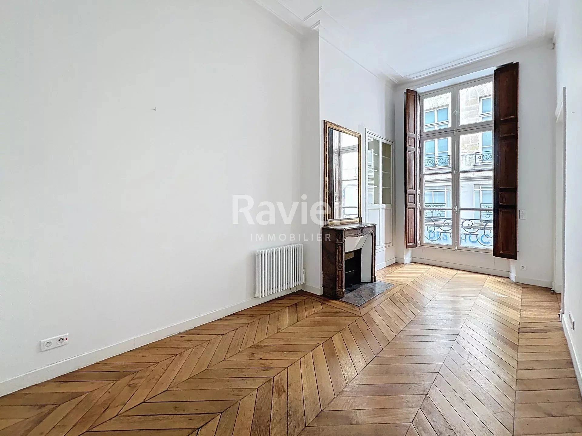 Il conserve les attributs de l’ancien : parquet, moulures, cheminées, ainsi qu’une belle hauteur sous plafond de plus de 3,65 m, apportant volume et luminosité.